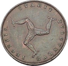 Isle of Man 1839 VICTORIA United Kingedom Farthing Triskeles Antique Coin i52775