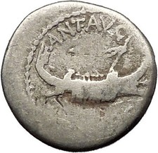 MARK ANTONY Cleopatra Lover 32BC Actium Ancient Silver Roman Coin LEG IV i53377