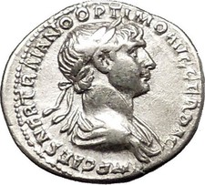 TRAJAN 114AD Authentic Ancient Silver Roman Coin Virtus with parazonium i53338