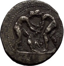 ASPENDOS in PAMPHYLIA 370BC Silver Greek Coin NUDE WRESTLERS Triskeles i53498