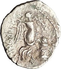 ROMAN REPUBLIC 87BC QUINARIUS Neptune Victory Asclepius Altar Silver Coin i53420