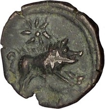 CASTULO in SPAIN 2ndCenBC Male BOAR Star Authentic Ancient Greek Coin i54004
