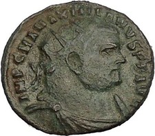 MAXIMIAN receiving Victory from Jupiter 296AD Ancient Roman Coin i53946