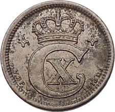 1913 Denmark King Christian X 1 Ore Antique Bronze European Coin i55198