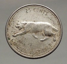 1967 CANADA Confederation Centennial Silver 25 Cents Coin LYNX Wild Cat i56965